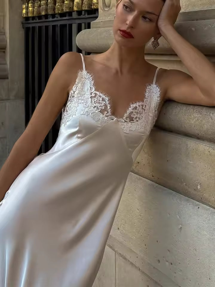 Step into timeless elegance with this Lace Patchwork Sling Maxi Dress, designed for women who love chic, refined evening style. The sleek silhouette and luxurious details make it an ideal choice for parties, special events, and formal occasions.